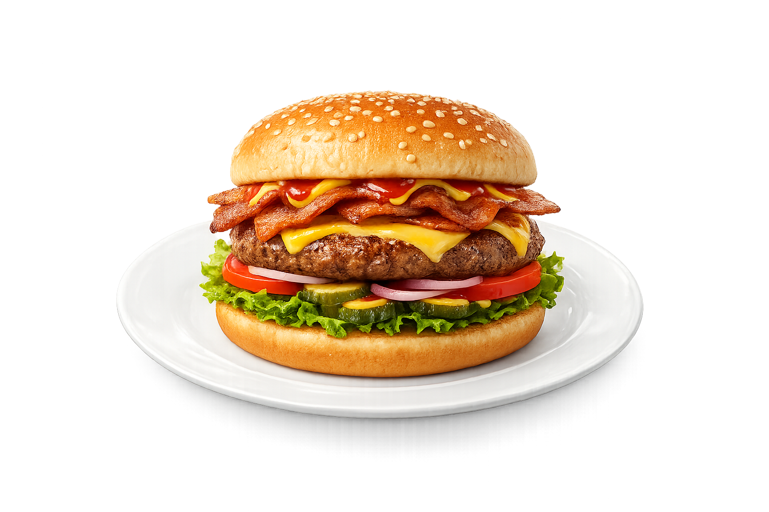 (hambihus , sajt, bacon, saláta, ubi, paradicsom, hagyma, mustar, ketchup)