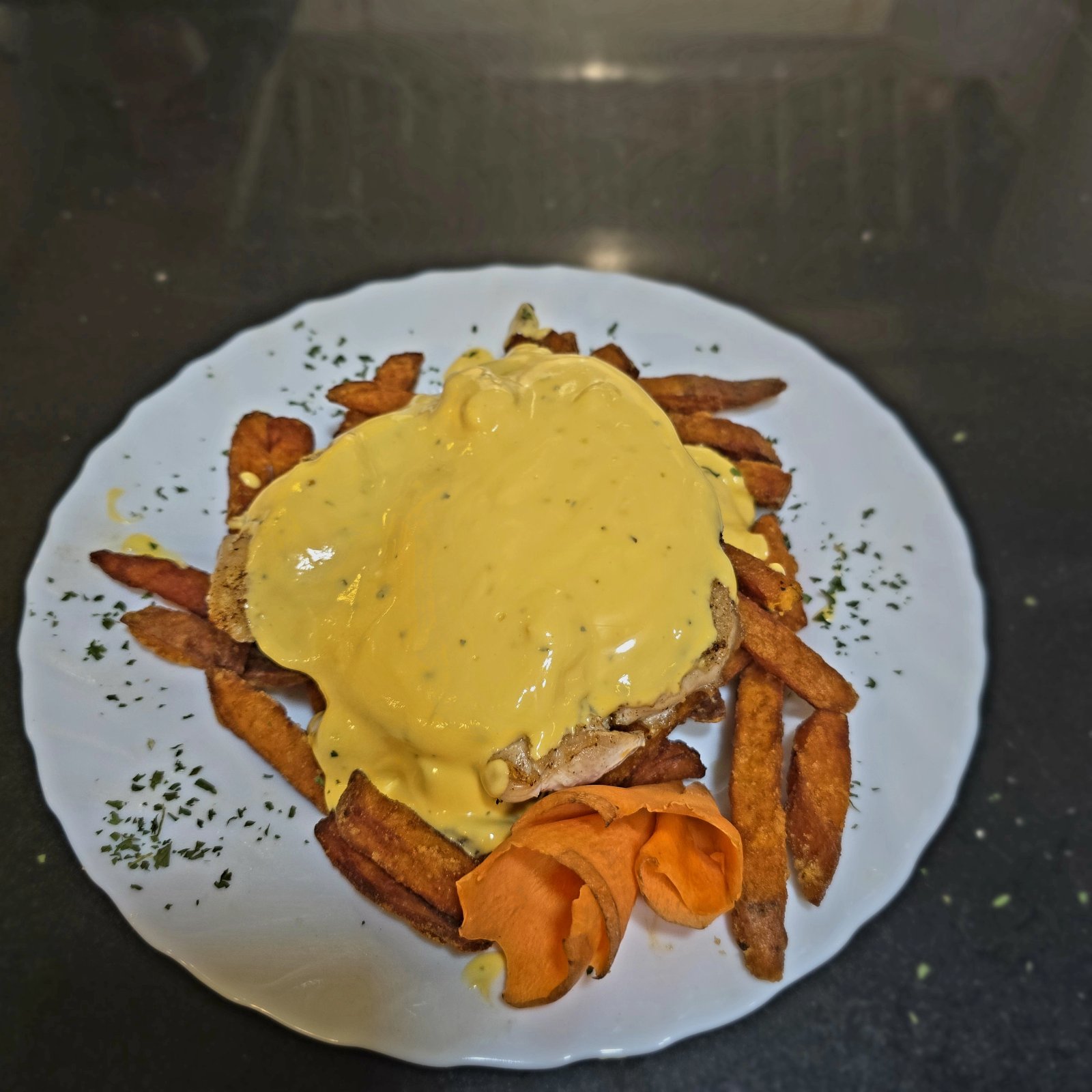 Cheddar csirke - hasábburgonyával